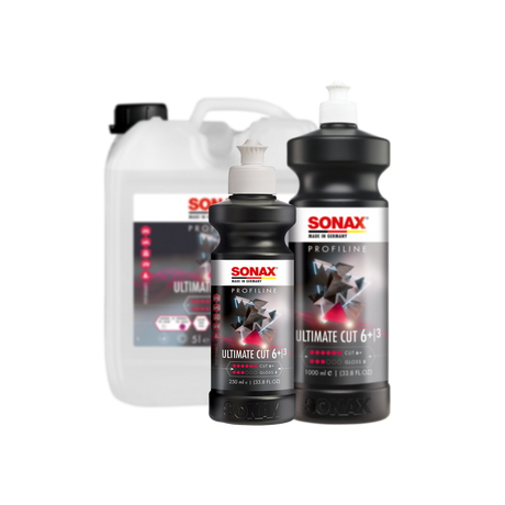 - Sonax - PROFILINE UltimateCut "6+/3" Schleif-Politur (bis P1000) - Kraftvolle Schleifpolitur für schnelle Ergebnisse und große Flächen 250 ml, 1 Liter, 5 Liter, 2x 250 ml Set, 3x 250 ml Set, 2x 1 Liter Set, 3x 1 Liter SetAuf Lager (16 Stück)Ab 19,66€- 30,24€Inhalt: 250mlGrundpreis (78,64€ / l)Niedrigster Preis der letzten 30 Tage: 25,99€Nicht verfügbar