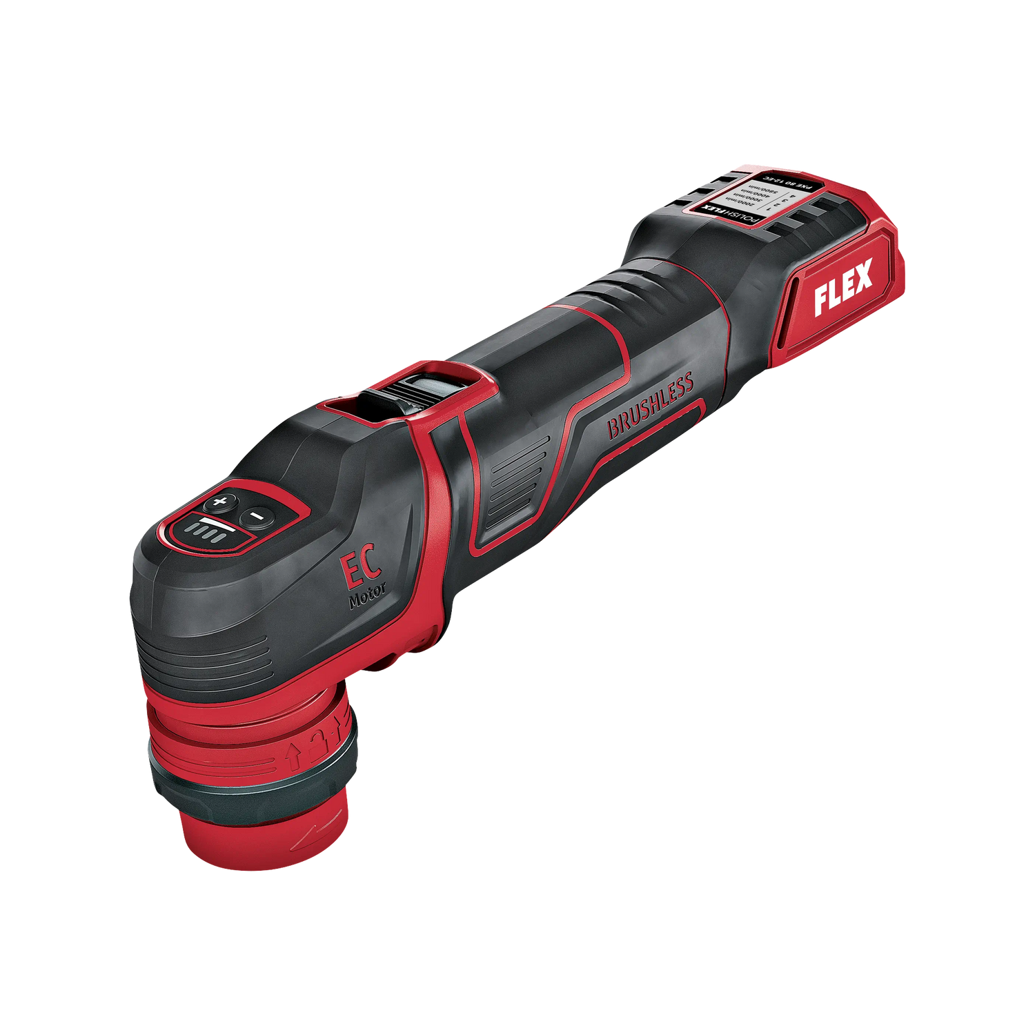 The 12V battery voltage is lower than the 18V systems of the larger FLEX polishers — and this is intentional. The PXE 80 does not need 18V because it is not designed for brute force, but for precise, controlled polishing work. The 12V platform keeps the overall weight low, enables the compact housing design, and delivers enough power for all tasks for which the PXE 80 is intended. If you need more power for flat work on large vehicles, opt for the 18V orbital polisher.