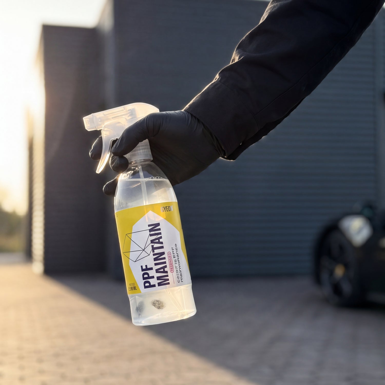 Economically calculated: A 500 ml bottle is sufficient for approximately 16 applications at 30 ml per vehicle. Those who refresh weekly will get about four months out of a bottle. Those who work bi-weekly will make it last half to three-quarters of a year. This makes Maintain the most affordable component of overall PPF protection — the film itself costs four to five figures, the coating three figures, and the refresh per application is under two euros.