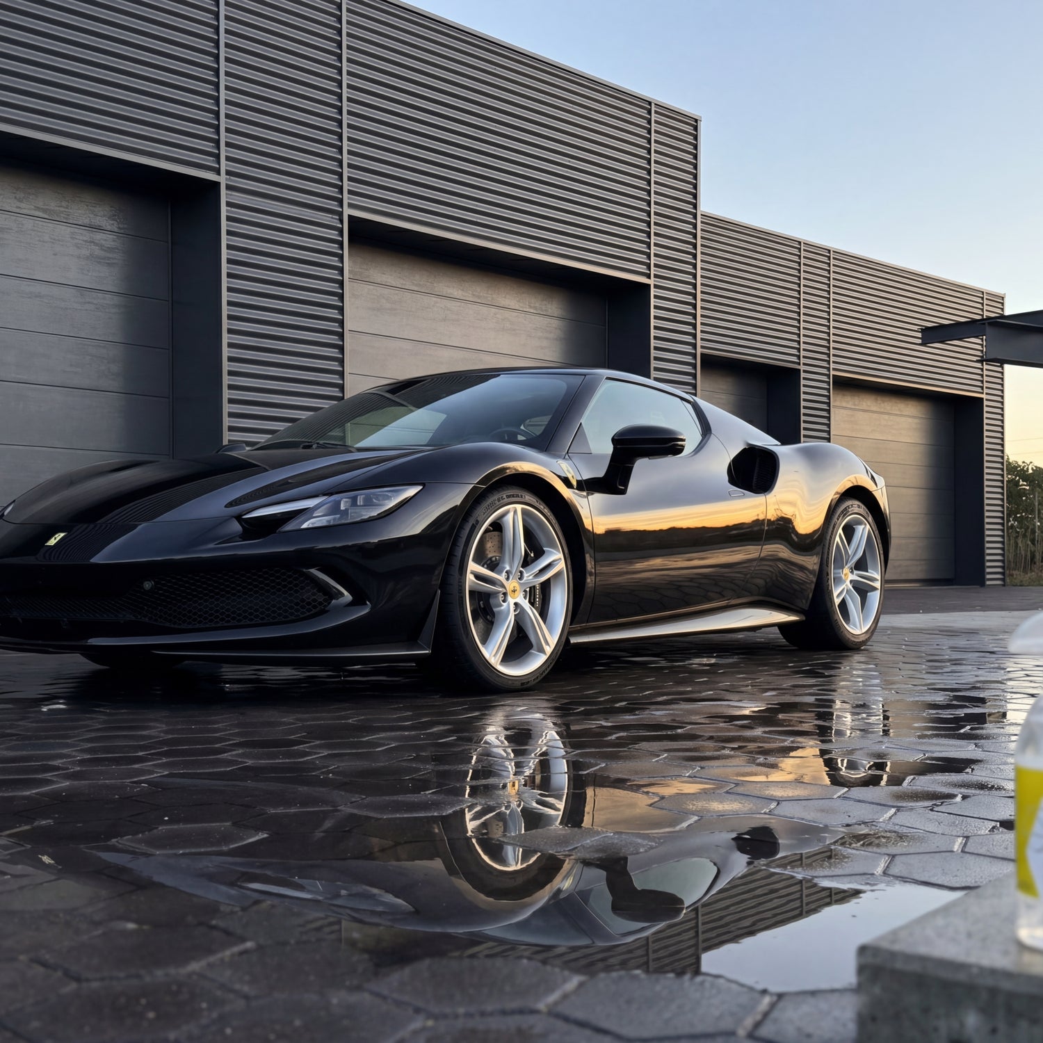 The sealant can be applied wet or dry. Wet application means: spray directly onto the damp film after rinsing, pick up with a drying towel — water is displaced, streaks disappear, and hydrophobicity is immediately active. This method saves a step and is suitable for quick maintenance in between. Dry application means: completely dry the vehicle, then spray and work in with two towel passes. The dry method provides more control on large surfaces and is the cleaner choice for dark films.