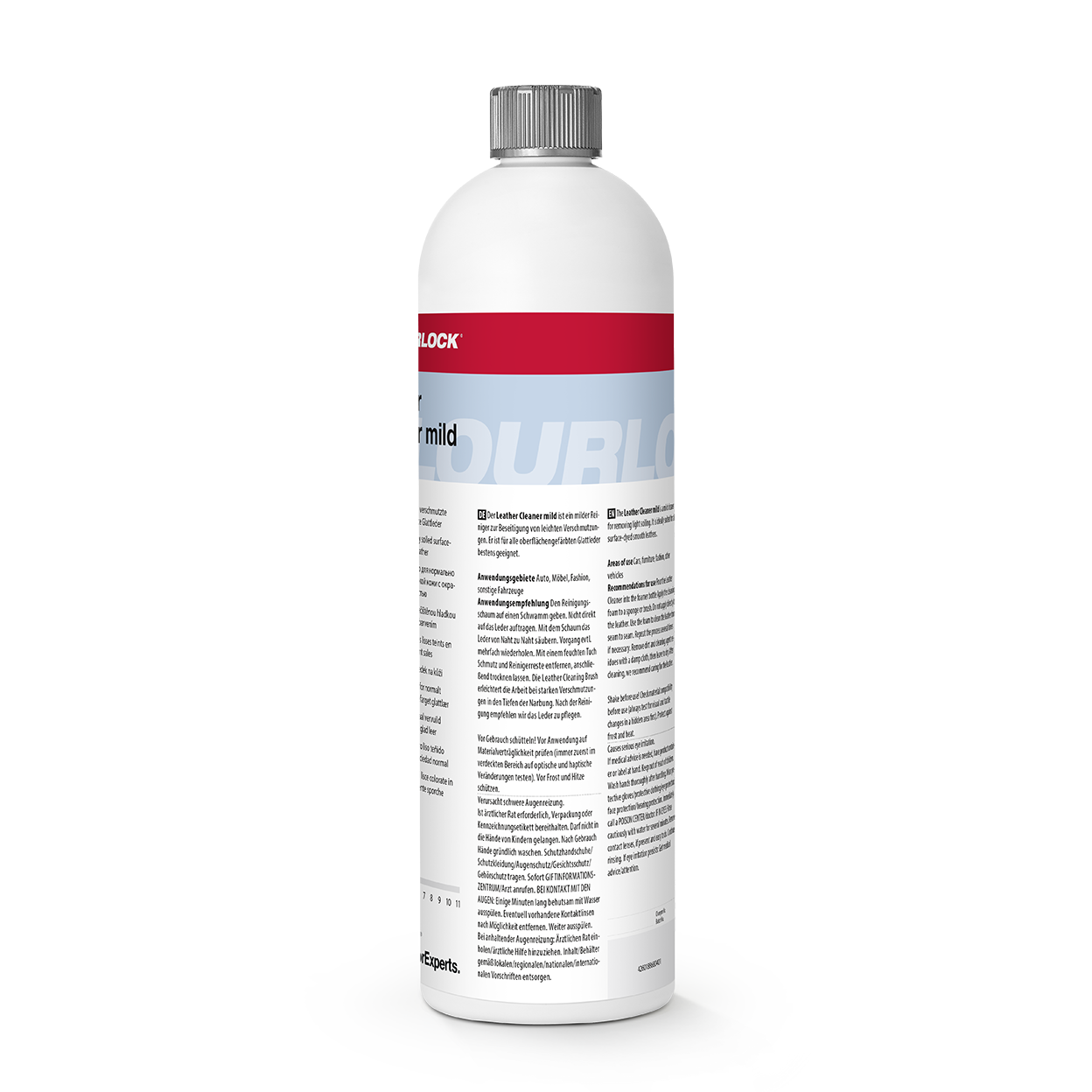 Leather Cleaner Mild arbeitet mit besonders feinen Tensiden, die Schmutz kontrolliert von der pigmentierten Lederoberfläche lösen. Moderne Fahrzeugleder besitzen eine PU-Deckschicht, die Schmutz zwar etwas abweist, aber Fette und leichte Abriebpartikel dennoch mit der Zeit speichert. Die milde Formel bricht diese Ablagerungen auf, ohne die Deckschicht zu belasten oder ihre Atmungsfähigkeit zu verändern. Laut Hersteller ist Mild ideal, um die natürliche Mattigkeit und den Griff zu erhalten — ein Vorteil gegenüber zu starken Reinigern, die bei häufiger Anwendung zu trockenem, stumpfem Leder führen können. Mild entfernt keine starken Rückstände, dafür aber all das, was sich im Alltag ansammelt.