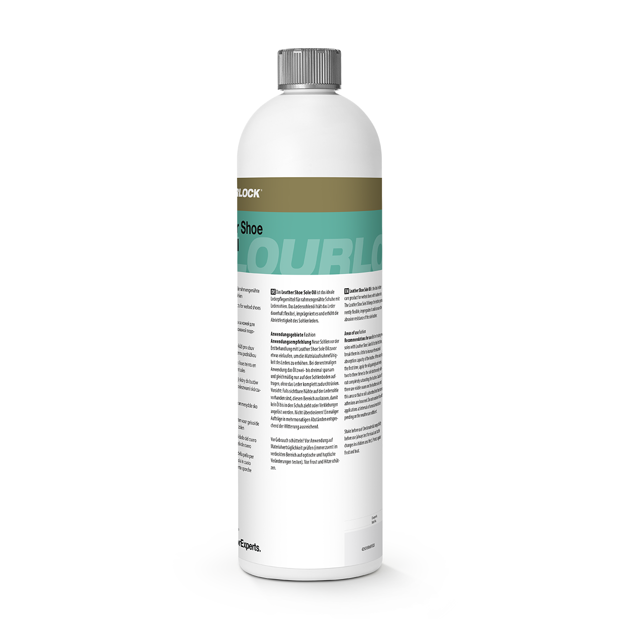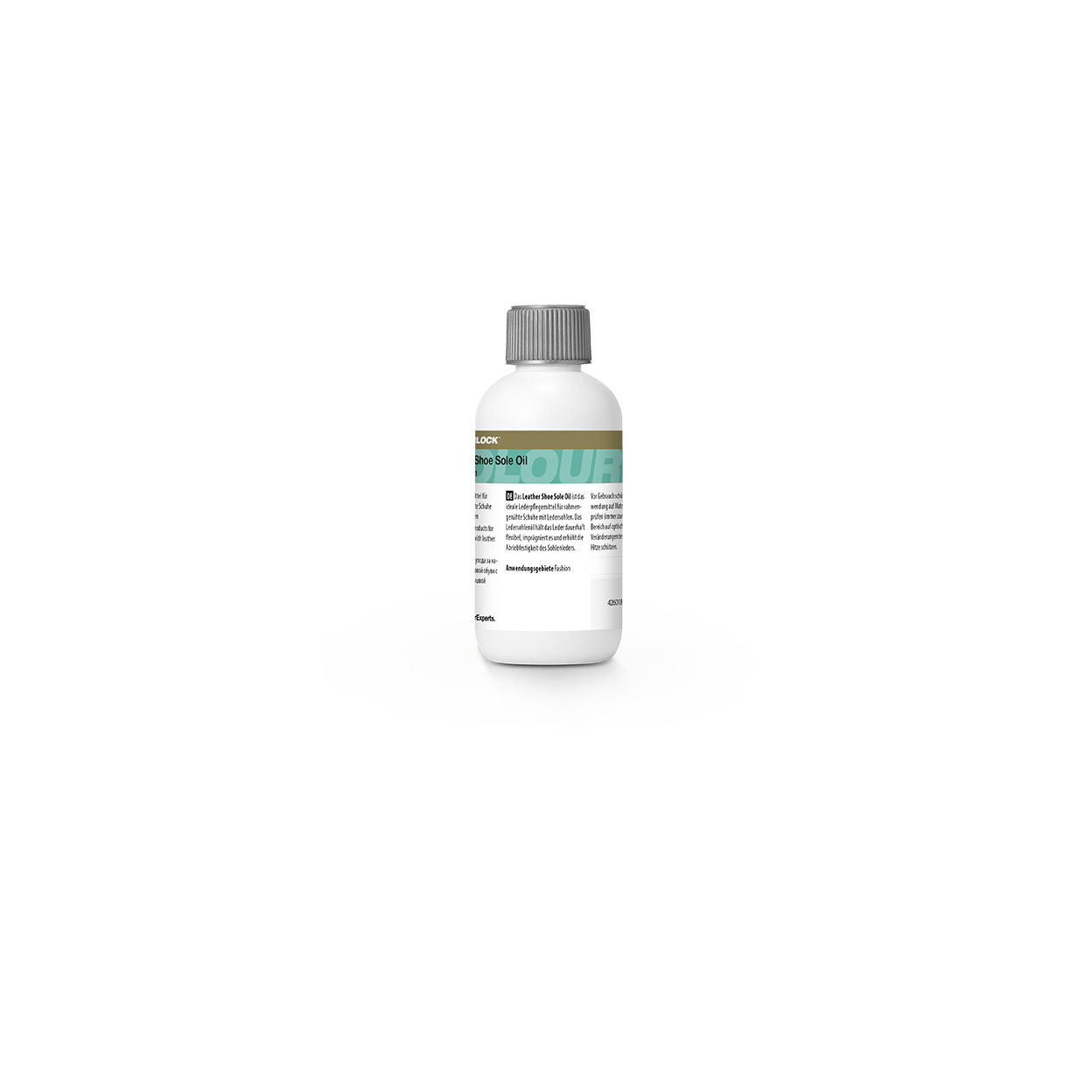 Was bewirkt COLOURLOCK Leather Shoe Sole Oil? — Das Öl versorgt Lederlaufsohlen intensiv mit Nährstoffen, hält sie flexibel, schützt vor Austrocknung und Rissbildung und verlängert so die Lebensdauer hochwertiger rahmengenähter Schuhe.