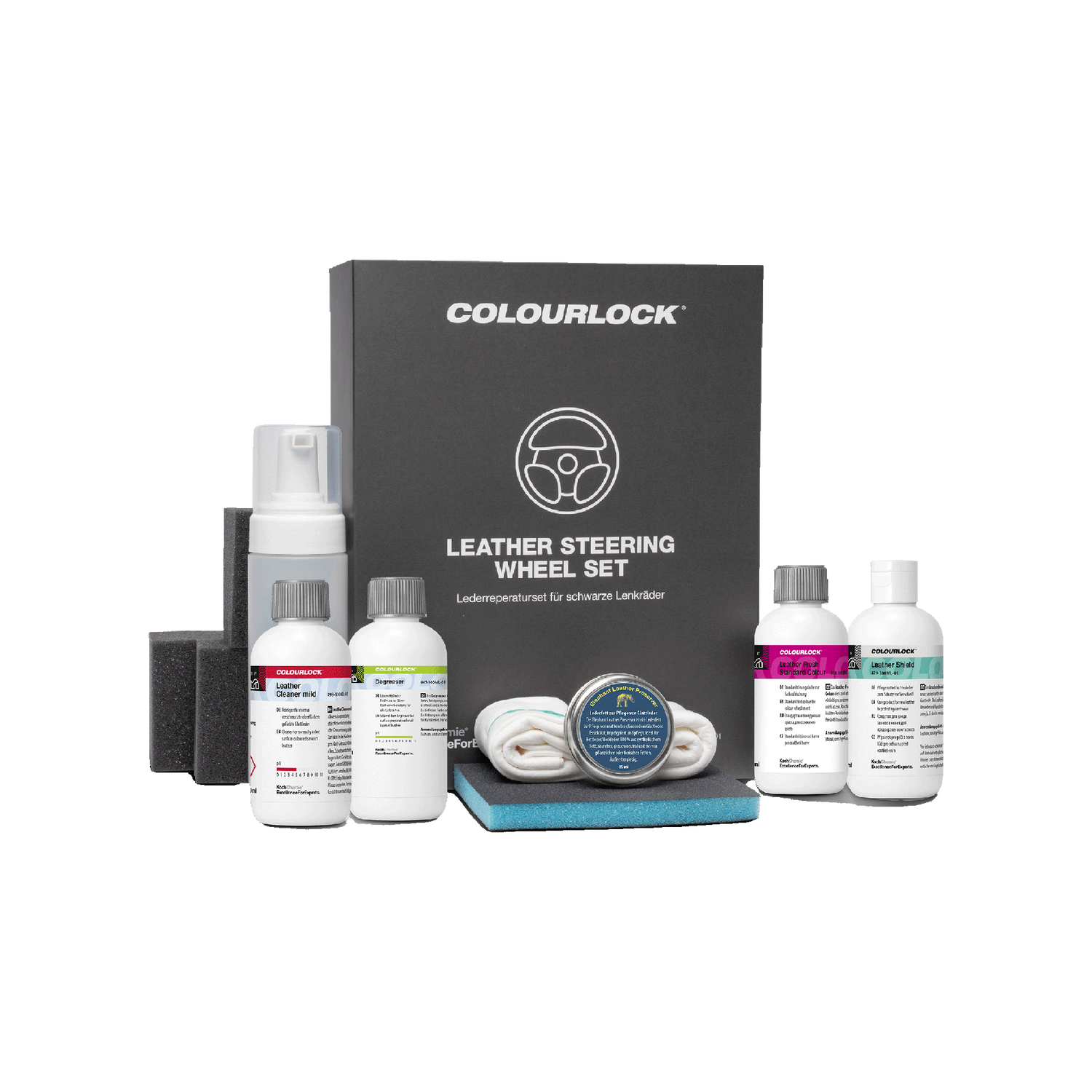 Koch-Chemie × COLOURLOCK COLOURLOCK "Leather Steering Wheel" Set (Lederreperaturset für schwarze Lenkräder) 415ml