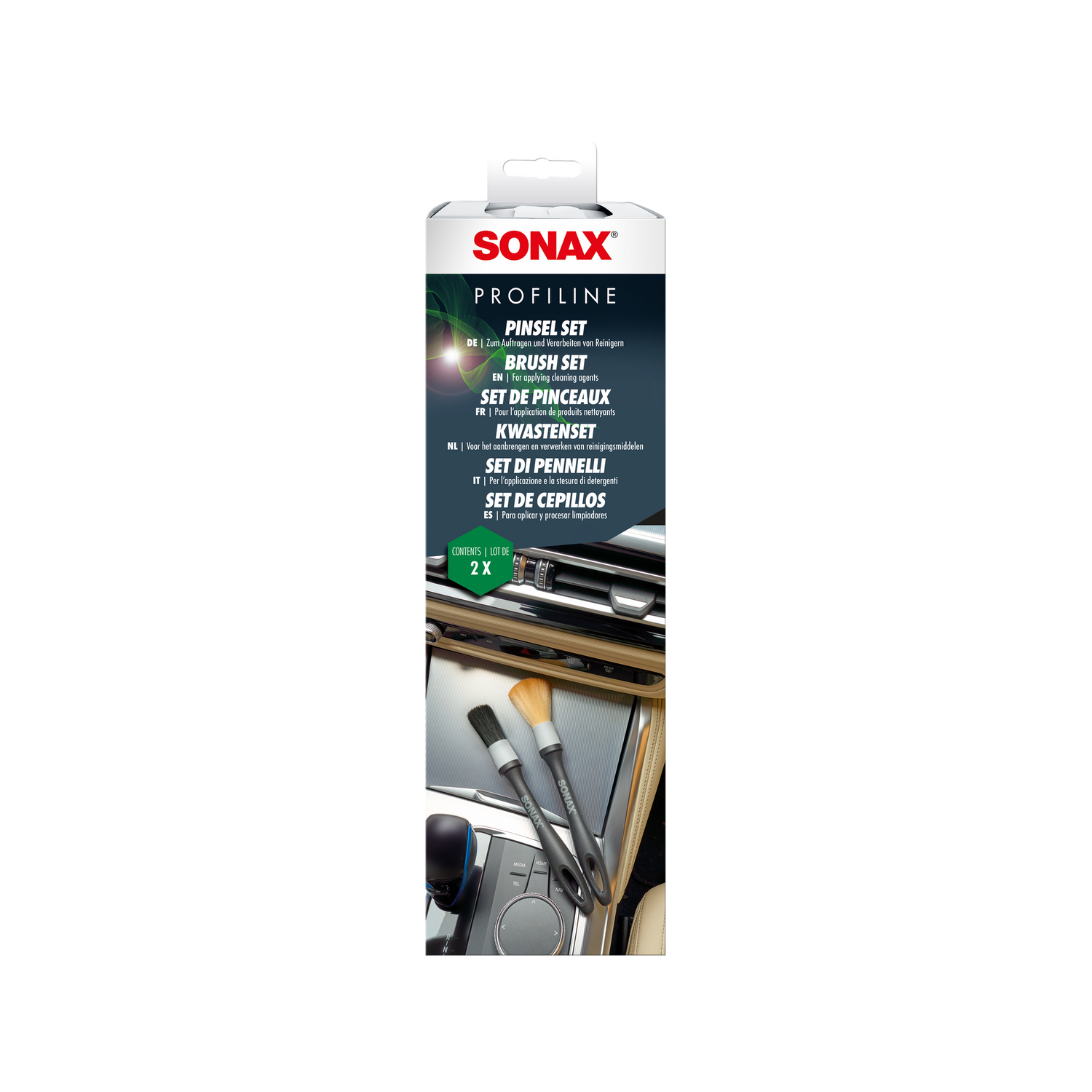 Der SONAX PROFILINE PinselSet ist als 2-teiliges Set erhältlich und richtet sich an alle, die professionelle Detailing-Ergebnisse anstreben und keinen Bereich des Fahrzeugs vernachlässigen wollen. Für mobile Detailer ist das PinselSet ein unverzichtbares Grundwerkzeug im Fahrzeug-Kit: Kompakt, leicht, direkt einsatzbereit. Für stationäre Aufbereitungsbetriebe gehört das PinselSet zur Grundausstattung jedes Aufbereitungsplatzes — am besten mehrfach vorhanden, damit während ein Set trocknet, bereits das nächste im Einsatz ist.