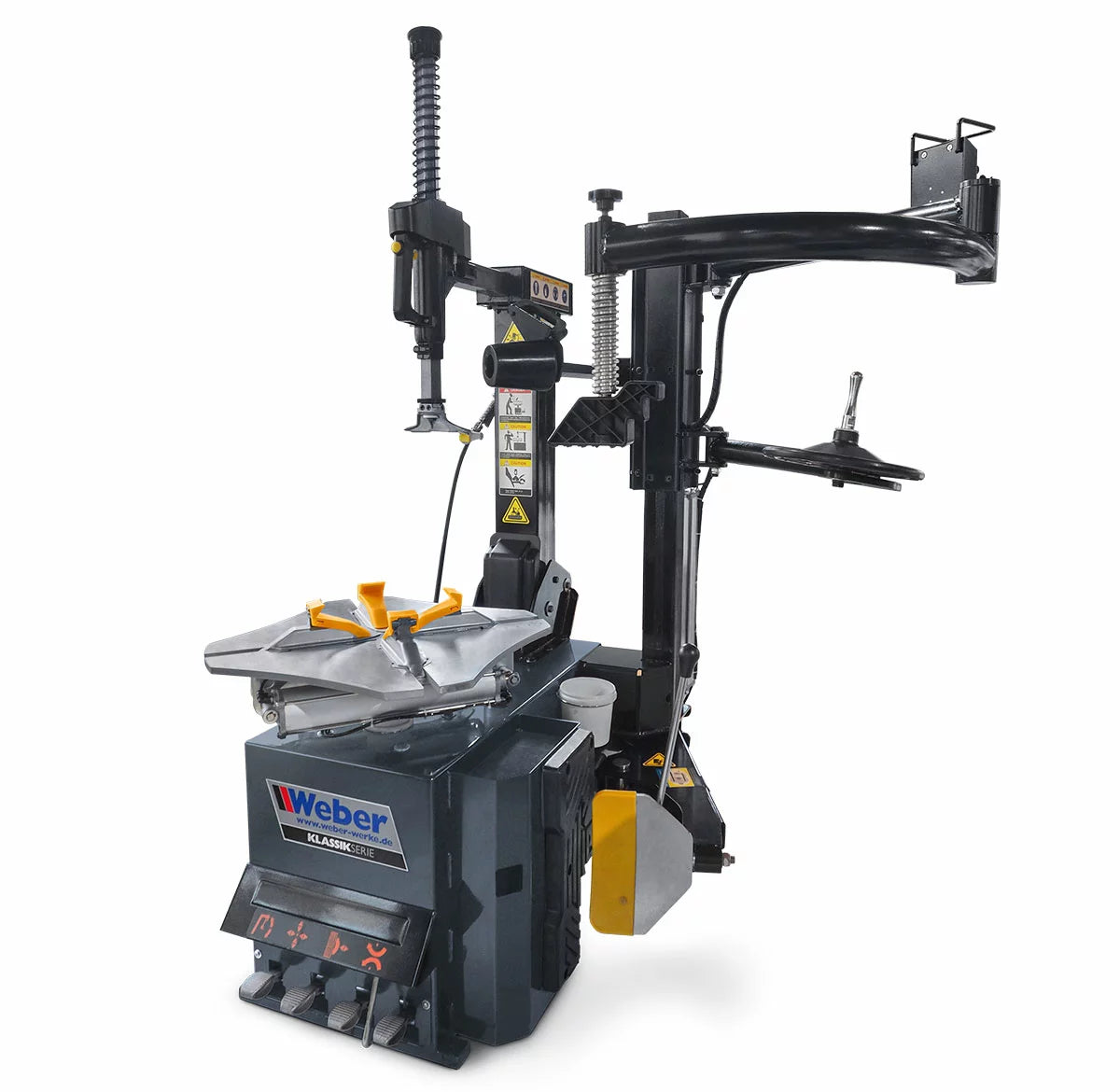Die Weber "H-1024" Reifenmontiermaschine bietet einen idealen Spannbereich für PKW und Kleintransporter. Mit optionalem Motorradadapter ist sie zusätzlich für eine noch größere Bandbreite von Fahrzeugen einsetzbar. Der selbstzentrierende Spannteller sorgt für maximale Präzision und vereinfacht den Montageprozess erheblich.